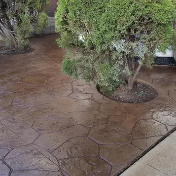 Stamped concrete is strong enough to withstand heavy foot traffic without cracking or crumbling. It's also resistant to chipping, pitting, and fading, and its coloring can withstand UV rays. Stamped concrete can last for many years, even in high-traffic areas, and is often used outside commercial buildings.